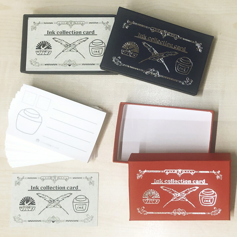 また文字やインク情報を書く欄もあるので、レイアウトで悩むこともありません。完成したら箱に戻して保管しても良いですし、お気に入りの名刺ホルダーに入れるのも良いですね。インクの見本帳を初めて作る方や少し不器用な方にもおすすめの、簡単におしゃれに仕上がるアイテムです。
