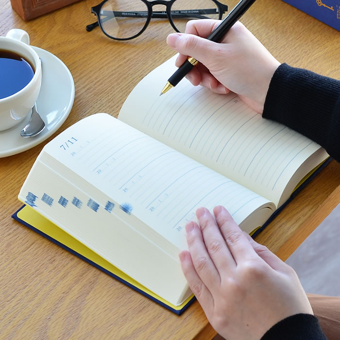 また、万年筆で書いたときに裏写りしないことも意識されていて、レビューも「万年筆での書き味もよく裏うつりもなく気持ちよく10年お付き合いできそうです」などと高評価ばかり。シンプルかつ高品質の10年日記を探している方にぜひおすすめしたいアイテムです。