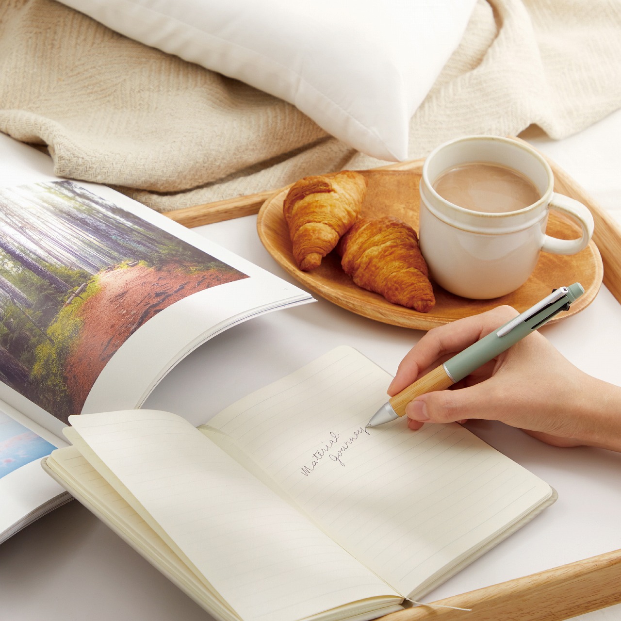 まず始めにご紹介するのは、「三菱鉛筆」の「多機能ペン ジェットストリーム 4&1 BAMBOO」。柔らかなニュアンスカラーとナチュラルな竹素材のグリップの組み合わせがおしゃれなアイテムです。今までの文具にはあまり無いまろやかな色合いは、美しい竹の繊維感と組み合わさることで、インテリアにもおしゃれに馴染みそう。竹材は耐久性もあるため、デイリー使いしたい本格派の多機能ペンですね。