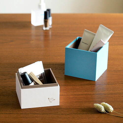 カラーはピンクとブルーの2種類。ピンクの小箱の内側はパープル、ブルーの小箱の内側はグレーになっていて、その配色にも心がときめきます。セットの2つだけでなく、同じココバコシリーズなら重ねて使用することができますよ。