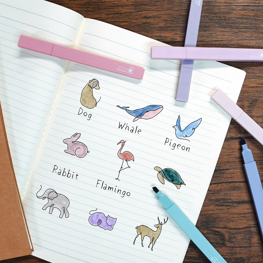 インクは落ち着きのあるくすみカラーを使用しているため、たくさんマーカーを引いても目がチカチカしません。ペン先は柔軟性があるので、勉強だけでなく塗り絵やイラストにも適していますよ。