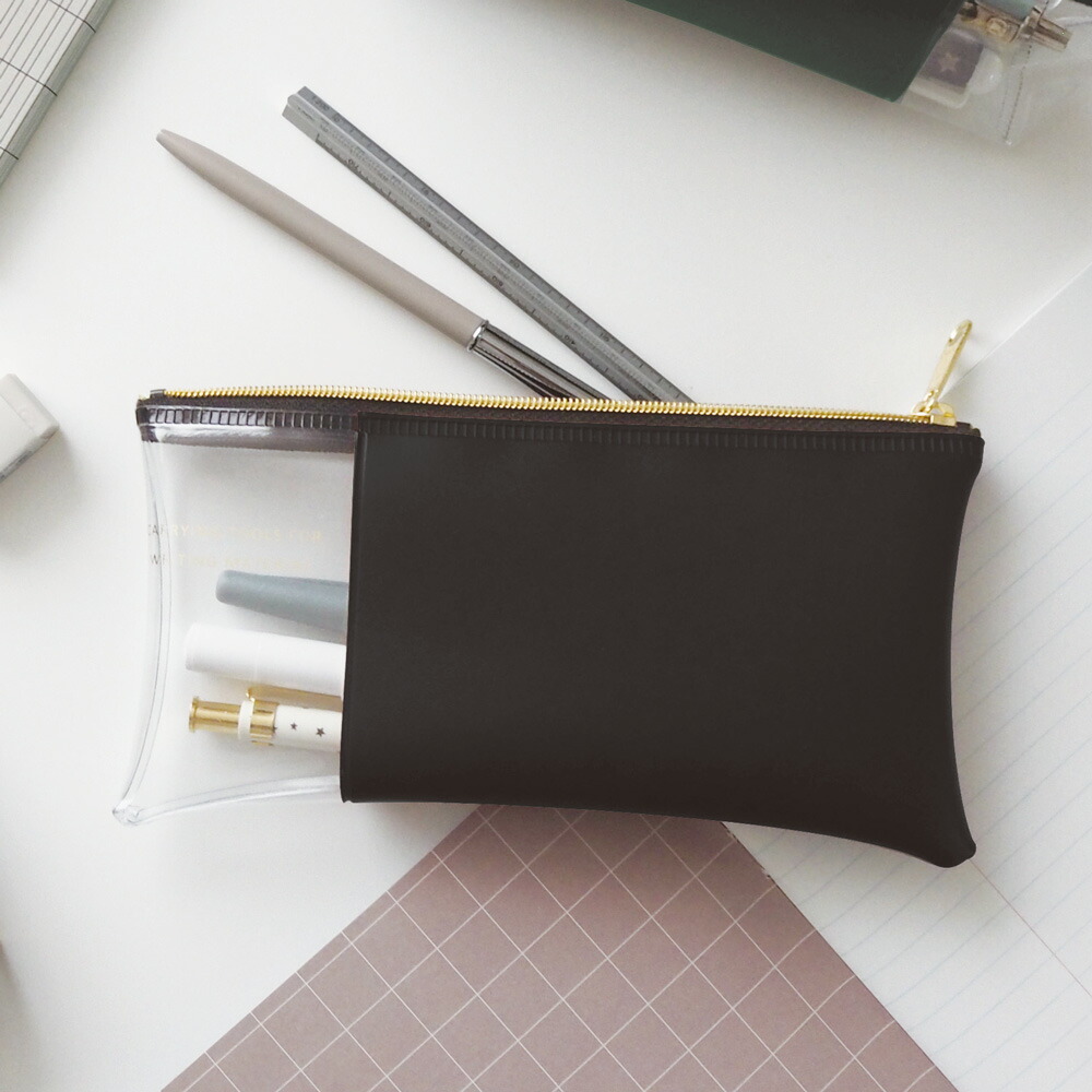 大きめサイズで十分な収納力がありつつ、形がフラットなので持ち運びやすさも◎。バッグの中に入れたとき、ペンケースの透明な窓からお気に入りの文具が見えると気分が上がりそうですね。