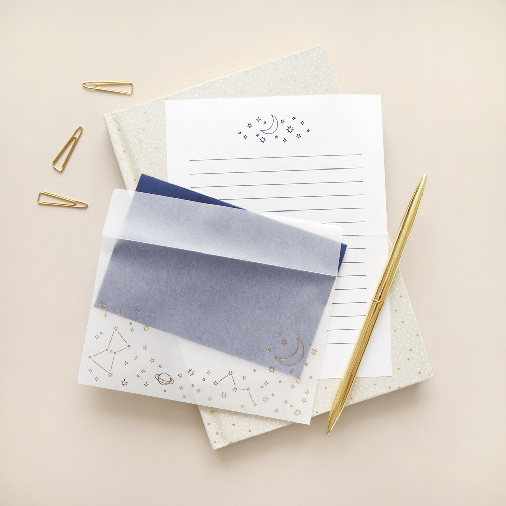 トレーシングペーパー特有の手触りと、やさしい彩りの見た目で、受け取った推しも喜んでくれるはず。おしゃれなレターセットが欲しい方におすすめのアイテムです。