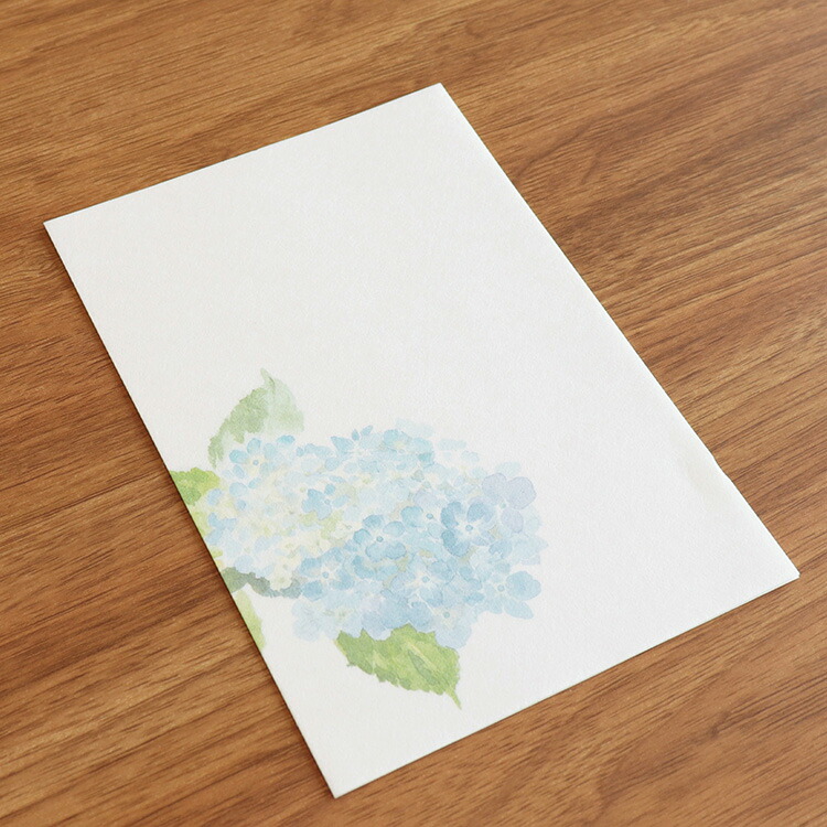 絵柄は紫陽花の他にバラやあやめなど初夏を代表する植物4種類が3枚ずつと、便箋を折らずに入れられる封筒が4枚セットになっていますよ。