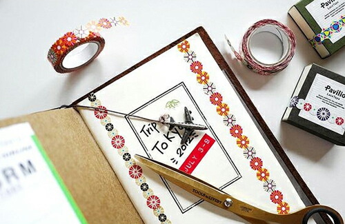 例えば、日記や手帳の四隅や仕切りとして押してみたり、無地のマスキングテープに押してラッピングのアクセントにしてみたりと、アイデアが溢れてきますね。押すだけで可憐で品格あふれる仕上がりになるので、いろいろなアイテムに使って楽しんでみてください。