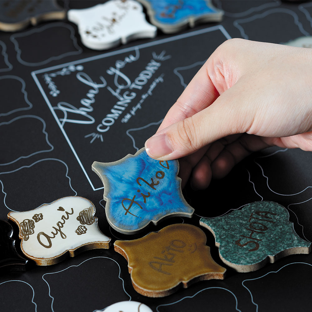 最後にご紹介するのは、タイルに寄せ書きをしたおしゃれなアイデア。色紙の寄せ書きにはない立体感が、特別な気持ちにさせてくれます。