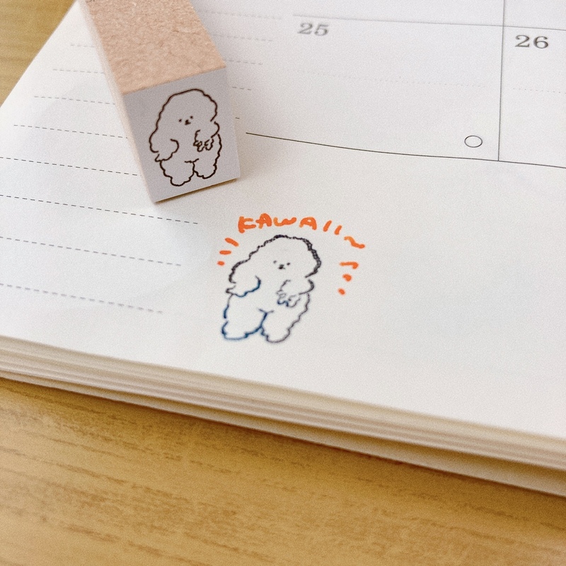 今回、かなりしっかりと予習をして臨んだのですが、その中でも気になっていたのはナガキパーマさんのブース。わくわくしながら向かうとそこにいたのは「ギャルピする犬」。もこもこの犬のなんとも言えない表情がツボで見るたびにニマニマしています。手帳のいたるところに出現させたい愛くるしさです。