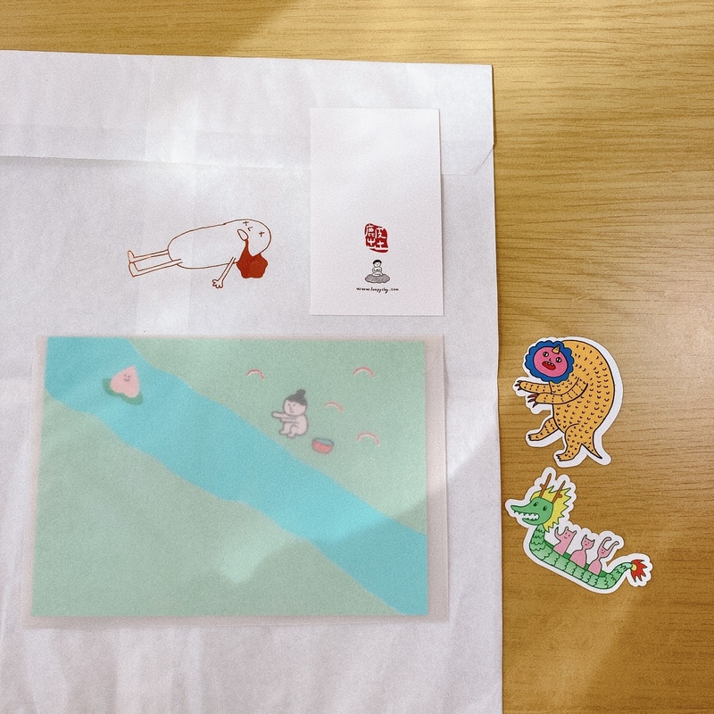 見た瞬間目が離せなくなってしまったのは、LOOPY 鹿皮のステッカーとポストカード。ステッカーのうち1枚はドラゴンとわかるのですが、もう1枚の謎のモンスターにくぎづけでした。モンスターなのにあまりこわくないところもお気に入りです。ステッカーはスマホに挟んで、会う人の目を惹いちゃおうと思っています。
