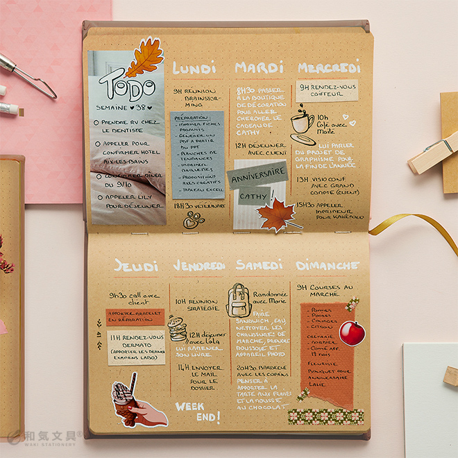 こちらのノートを使って、自分の生活スタイルに合わせたオリジナルの予定表を作ってみてはどうでしょうか?例えば、見開きでマンスリーカレンダーを作ったり、1ページに1日分のスケジュールを詳しく記入したり…。自分流のデコレーションを存分に楽しめる一冊です。
