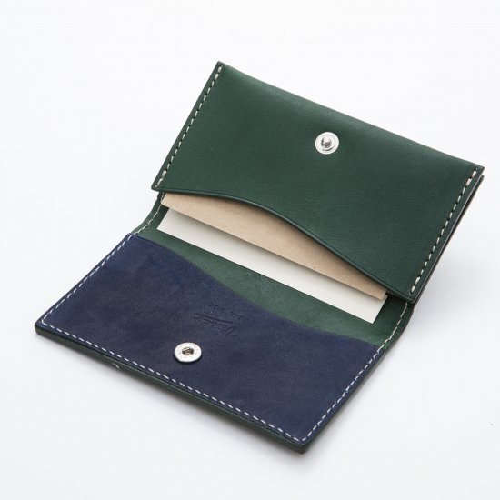 ボタンを外して開くと、両側にカードポケットが付いています。ふた部分がなく、左右どちらにも名刺を入れられる仕様は珍しいですよね。片方に自分の名刺を、もう片方に受け取った名刺を収納すれば、スマートに整理整頓できます。