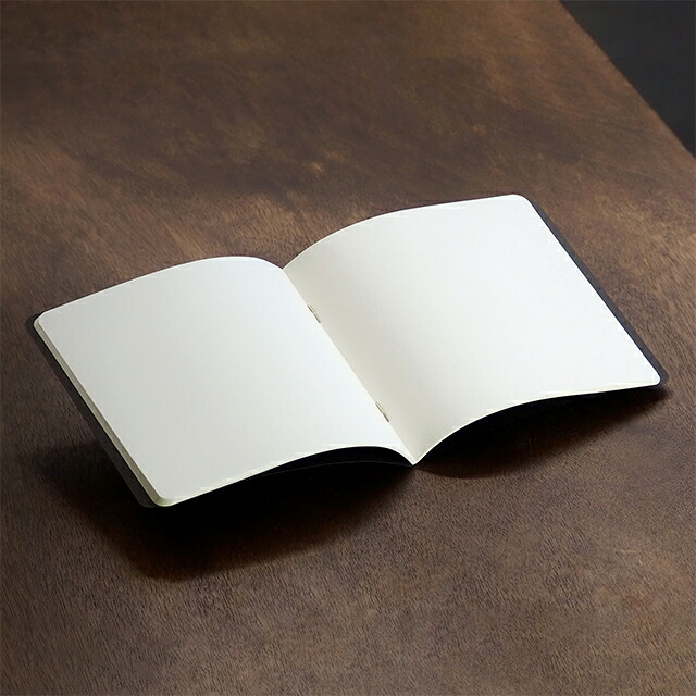 製本には糸かがり綴じを採用していて、ノートのページは180°フルに開きます。書き込む際もストレスフリーですね。また、表紙がないので描くときの開きにくさやガタつきがないのもうれしいポイント。