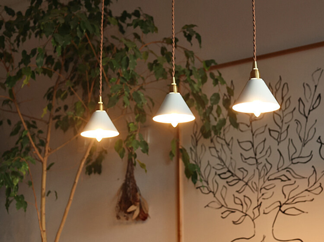 カフェ風インテリアにマッチする円錐型のペンダントライト