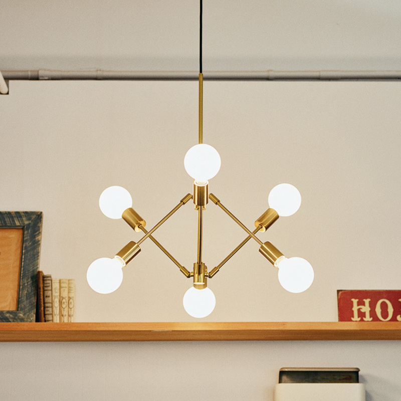 続いてご紹介するのは、6灯の集合体が印象的なデザイン性たっぷりのペンダントライト。1つ取り入れるだけで、多灯使いを手軽に楽しめます。個性的なシルエットは灯りをつけなくても存在感があるため、部屋を印象付けるオブジェとして取り入れるのも◎。