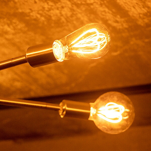 写真のように、不揃いな電球をあえて取り付けるのもおすすめです。シェードが無いからこそ活かせる、電球ディスプレイをめいいっぱい楽しんでみて。