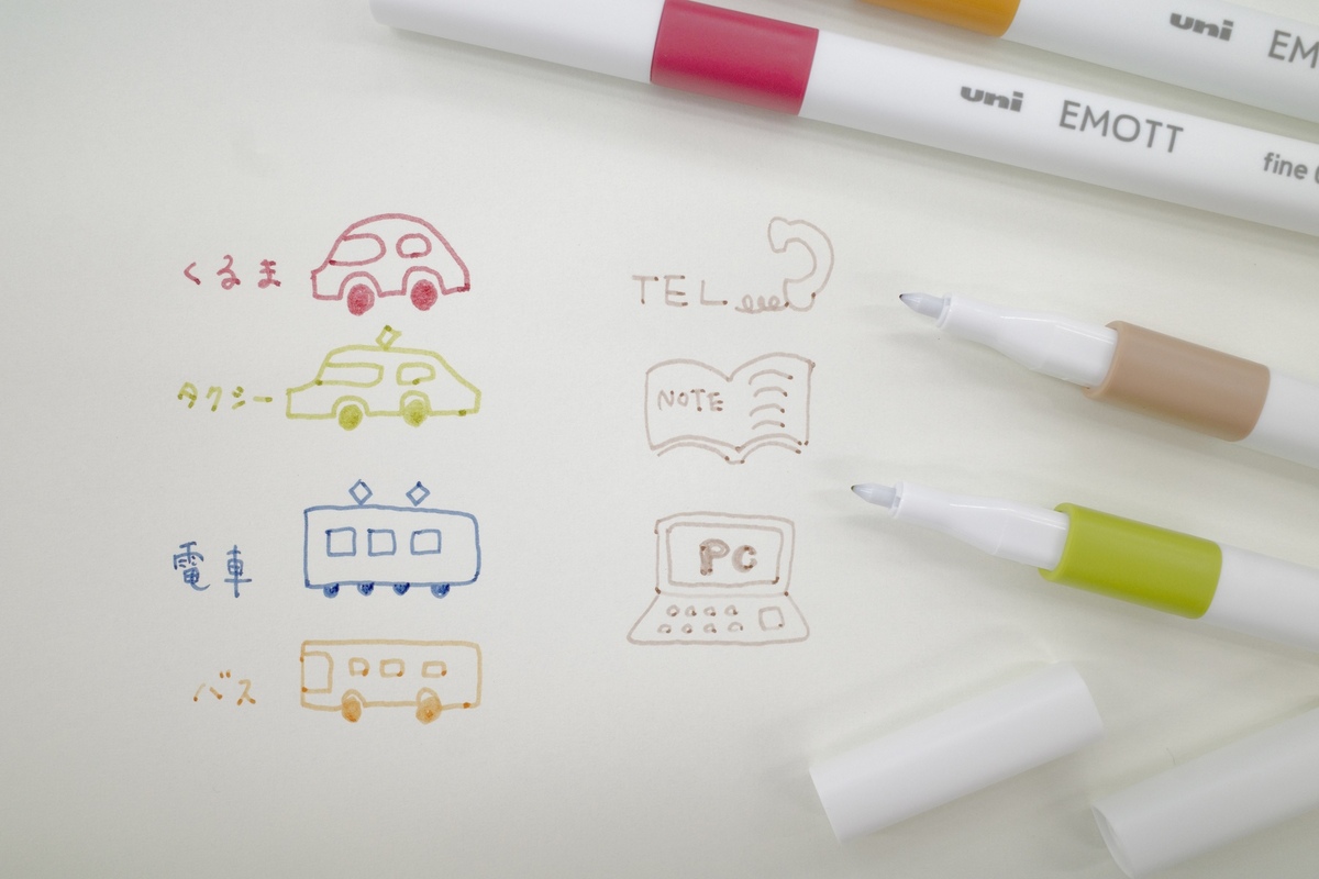 ふわっとやさしいカラーでかわいい手帳に。水性ペン「EMOTT」