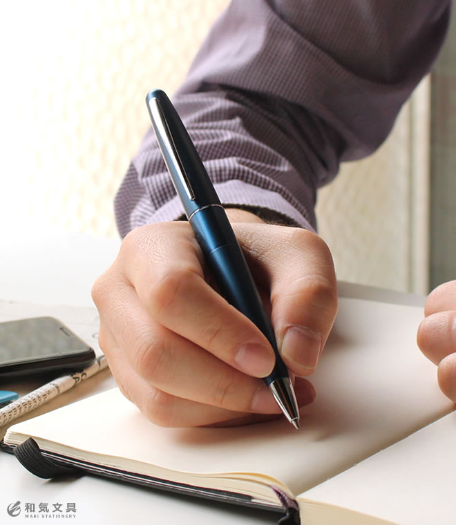 コロンとした丸みのあるフォルムが握り心地抜群。シンプルなデザインはビジネスシーンにもすっと馴染むため、お仕事用の手帳と一緒に持ち歩くのもおすすめです。