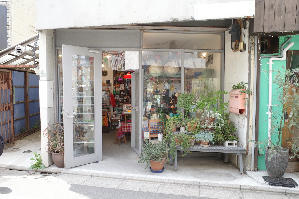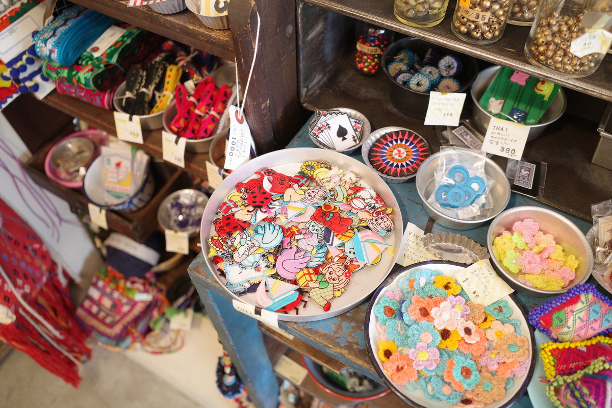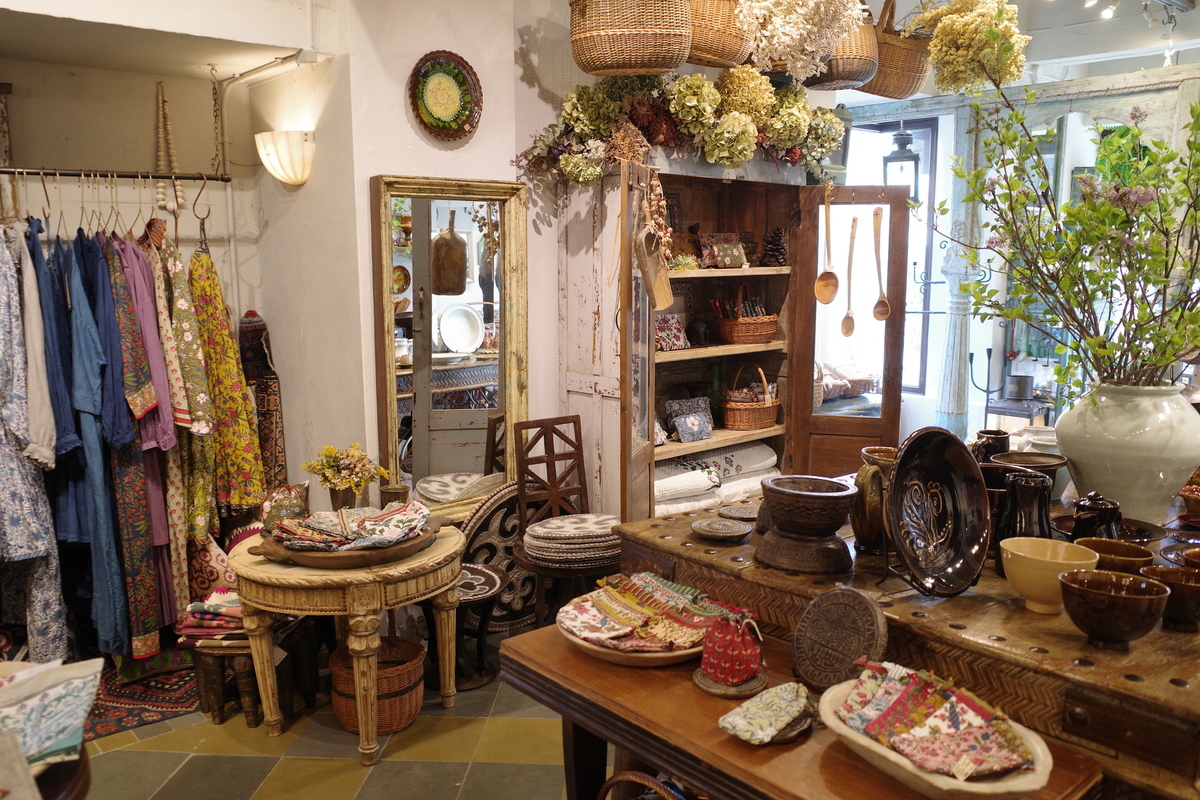 一度駅に引き返し、「つるばみ舎」と反対方面の南口へ。6分ほど歩いて商店街を抜けた先、住宅が立ち並ぶ中に突然現れるのは、国内外のハンドクラフトやアンティークを取り扱う「Rungta」です。ウズベキスタンやインドなど、それぞれの国に古くから根付く伝統技法を取り入れたアイテムが多く並びます。