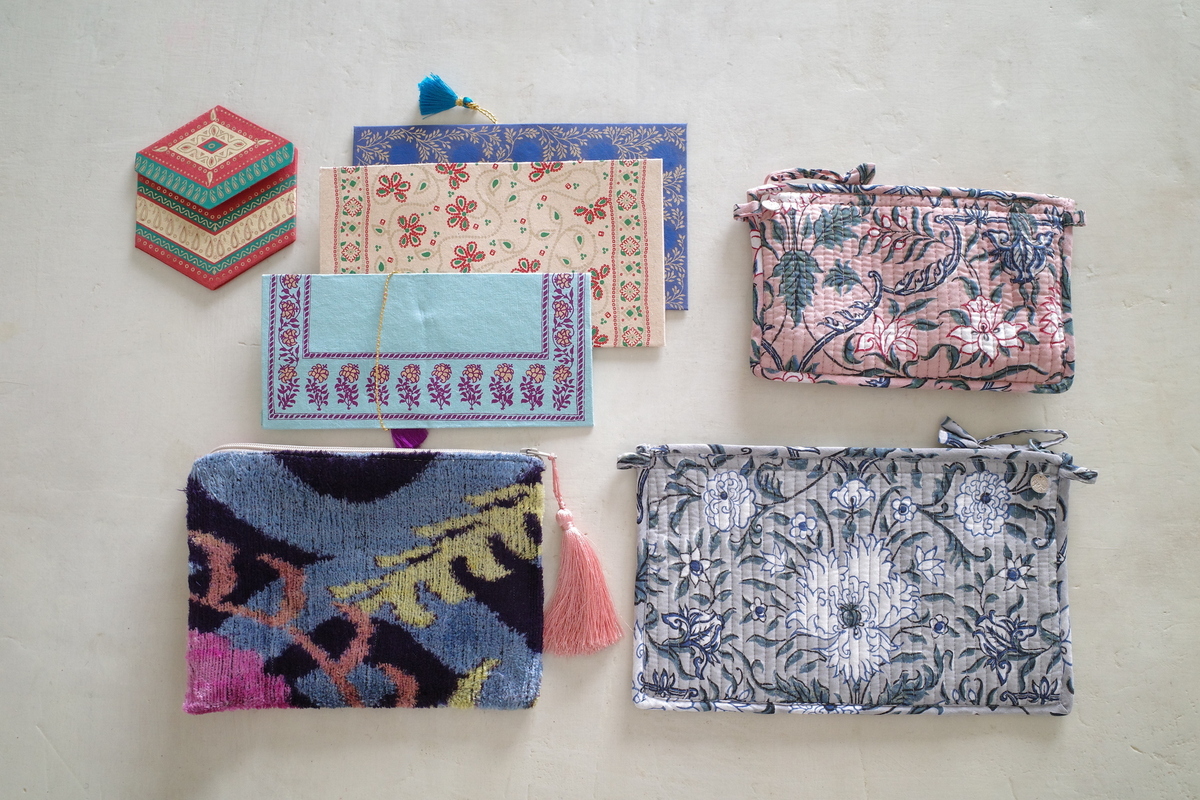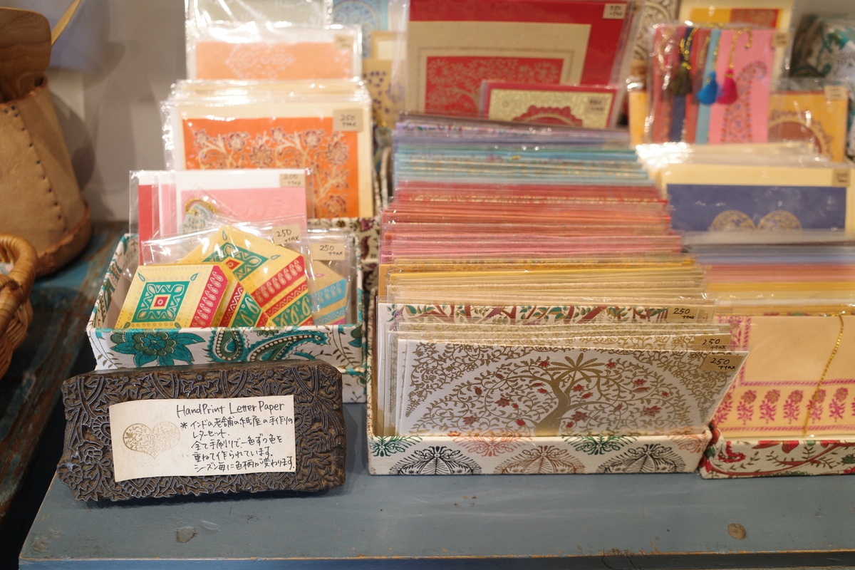 上段左のメッセージカードは、インドで作られたもの。日本のメーカーや工房で作られるものとは違った魅力が詰まっていて、紙質も形もユニークです。