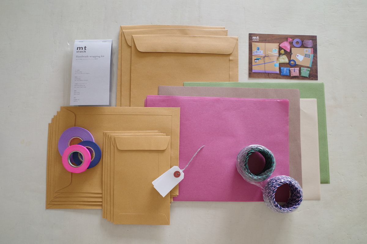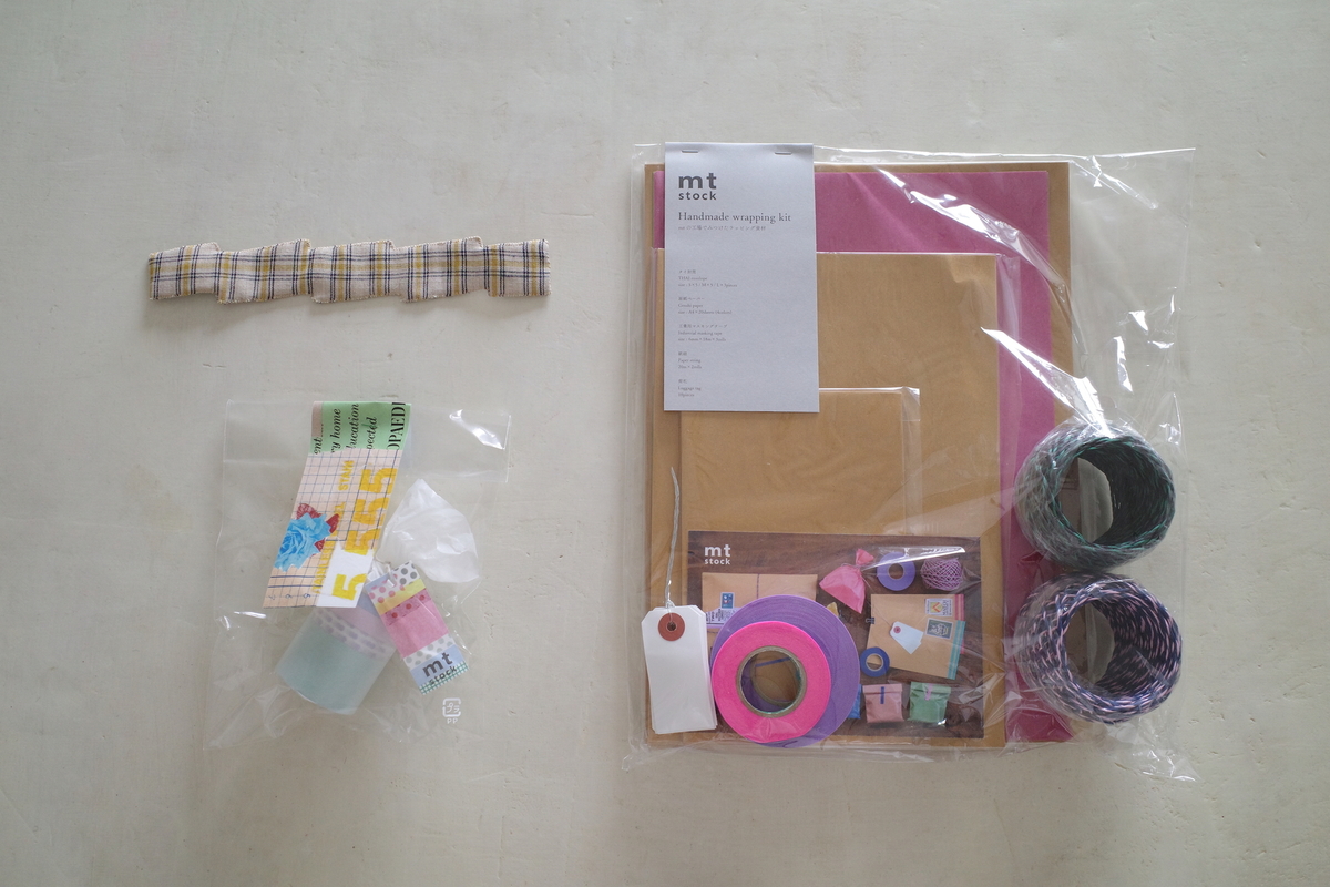 チハルさんは、「mt stock」の第3弾アイテムとなるラッピングキットもゲット。工場を巡って集めたという工業用テープ原紙、クラフト封筒、紙紐、荷札がセットになっており、単体でも、組み合わせても楽しめる嬉しいキット内容です。