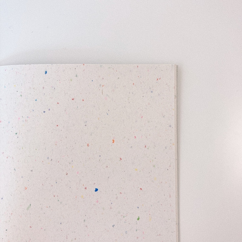 ノートの中紙には広島で生まれた折り鶴の混抄紙が使用されており、シックな表紙とカラフルな中紙とのギャップが魅力的。同じページが1ページとしてなく、混抄紙ならではの多様な表情を楽しめるノートです。