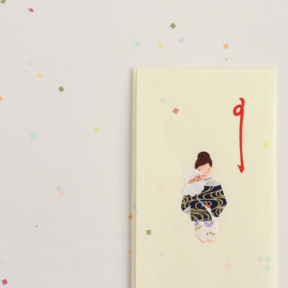 こちらは手作りの切り絵細工が魅力的な和紙ののし袋です。赤ちゃんを抱っこしたママの切り絵に、ほっこりとした気持ちになりますね。