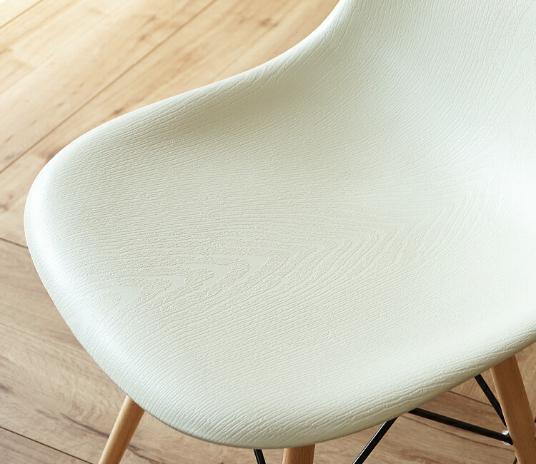 座面には凹凸のある木目柄があしらわれ、脚部の天然木とさりげなくおそろいに。アイボリーのほか、ブラウンやブルーも淡いトーンで、ホワイトインテリアをやさしく彩ります。