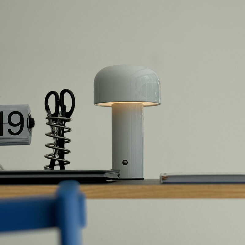 かわいいきのこ型の北欧風デスクライトは、USBで電力を取り充電もできるタイプ。充電しておけばどこでも持ち運びできて、電力のないところでもそっと明かりを灯してくれます。充電しながらデスクライトとして使ったら、そのまま寝室のベッドサイドで使えて便利ですね。