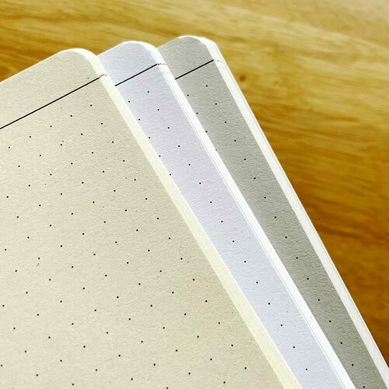 ノートの種類は、文字を書くにも図を描くにも便利なドット方眼タイプ。縦だけでなく横向きにも使えるので好みに合わせて愛用できます。