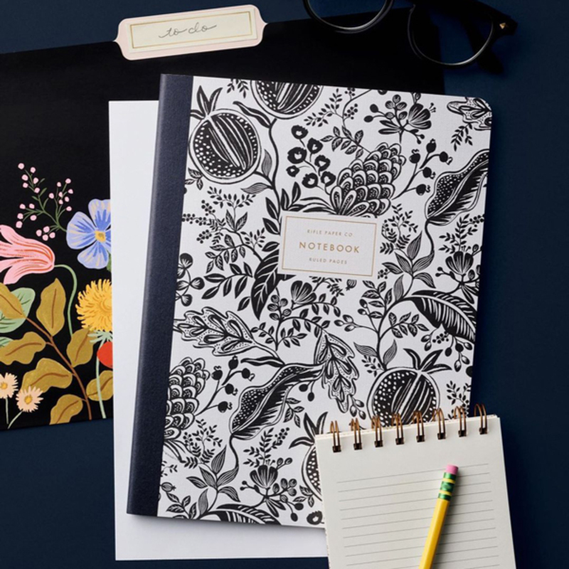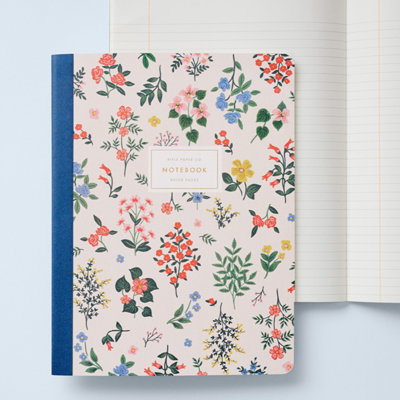 「Ruled Notebook」は、アメリカのステーショナリーブランド「Rifle Paper Co. (ライフルペーパー)」が製作するアイテム。ライフルペーパーは水彩画とデザインを融合したスタイルを特徴とするブランドで、こちらのアイテムにも繊細で華やかなボタニカルデザインが配されています。