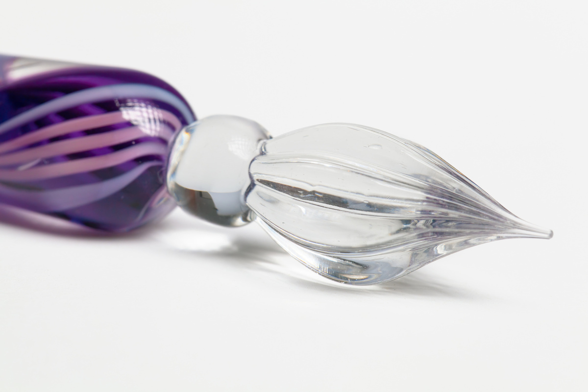 美しい曲線の溝がついたペン先がチャームポイントのガラスペン。実は、このペン先の溝こそガラスペンで文字が書ける秘密です。