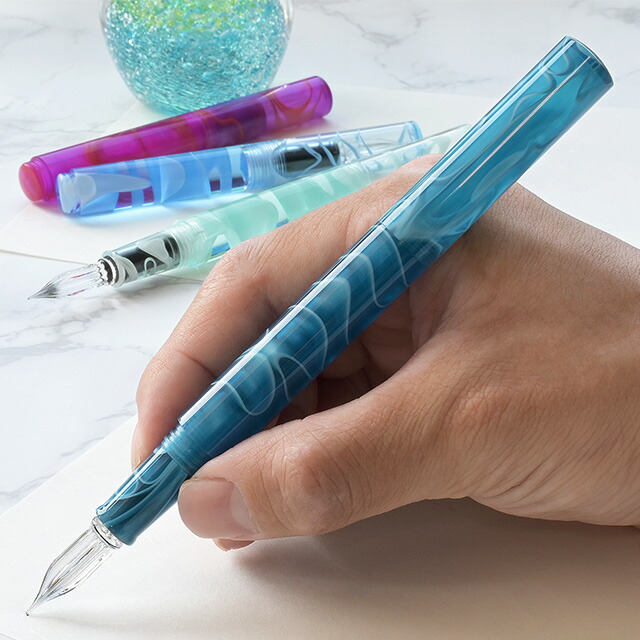 「ギターガラスペン オーロラ」は、マジックインキでおなじみの「寺西化学工業」のガラスペン。「オーロラ」という名前の通り、ボディ全体にあしらわれたマーブル模様は、眺めていると吸い込まれそうな美しさがありますね。