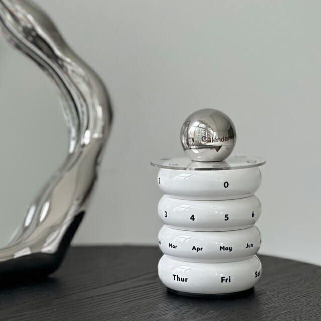 こちらは、silver ball(シルバーボール)回転式スピニングカレンダー。アート感溢れるおしゃれなオブジェのようにも見えるユニークなカレンダーは目を引くこと間違いなしです。