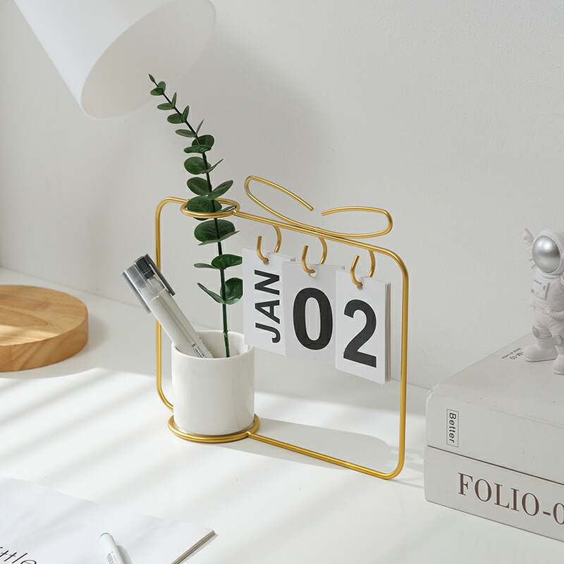 カレンダーには珍しく、花瓶が付いている点も注目ポイント。ゴールドのワイヤー本体に白い小さな花瓶がよく映えますね。花瓶部分にはお花はもちろん、よく使うペンをさして実用的に使うこともできます。パッと一目で日付を確認できておしゃれなデザインなので、殺風景になりがちなデスク周りを華やかに演出してくれますよ。