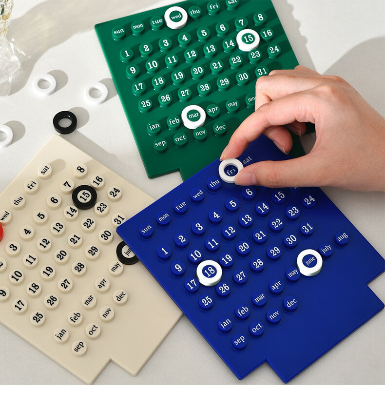 デスク周りをパッと明るくしてくれるこちらのカレンダーは、毎日の日にちや曜日をリングを使って選択します。自分でリングを使って日にちを変えることで、季節の移り変わりが感じられそうですね。