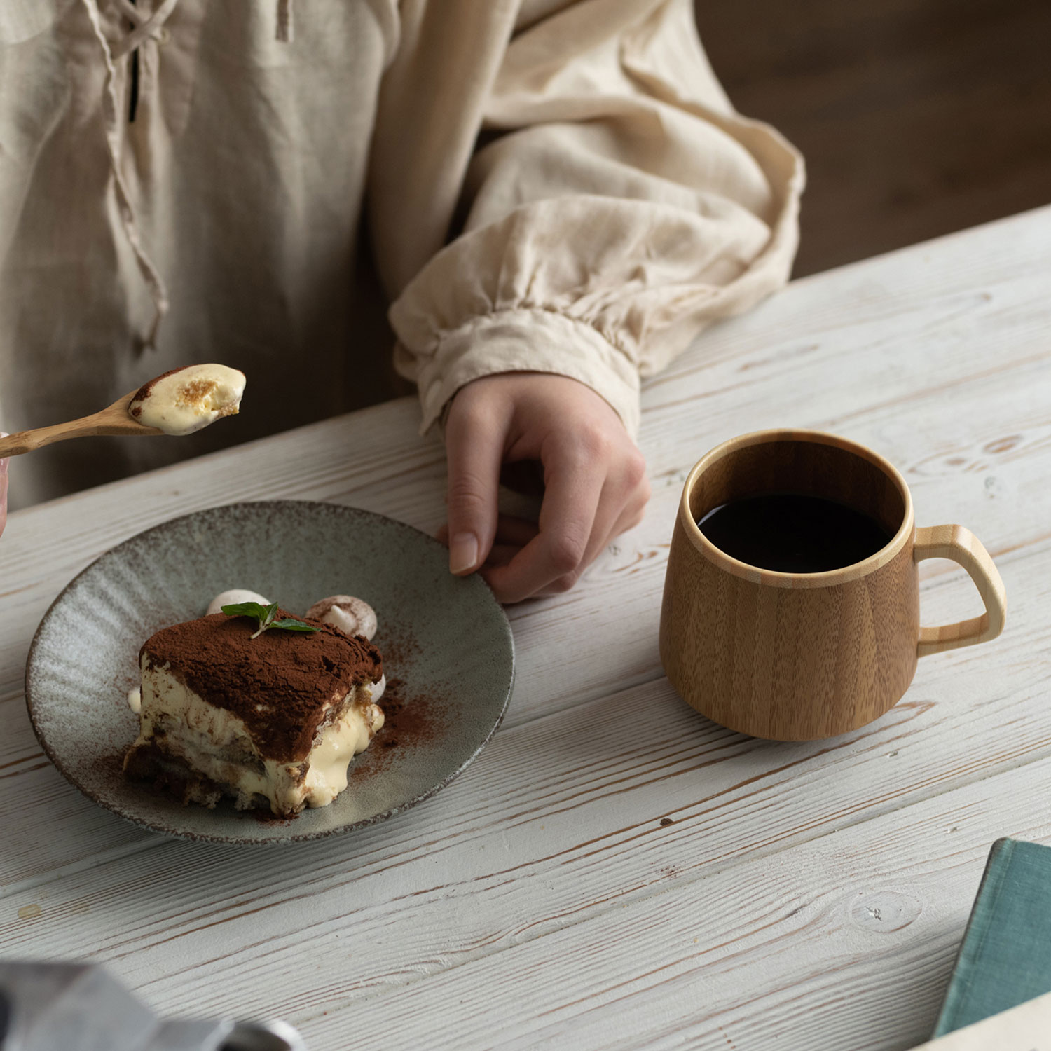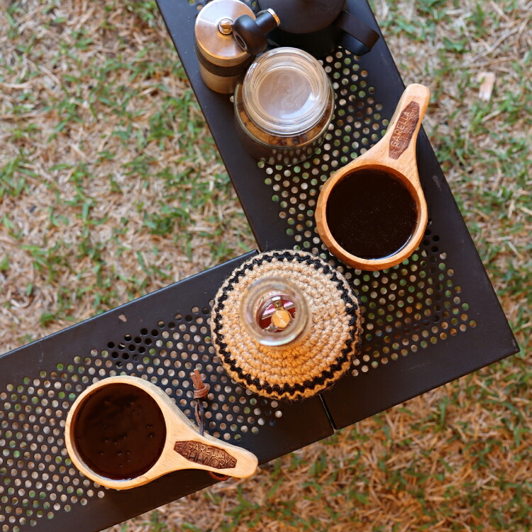 木製マグカップを片手にほっと一息。癒しの時間を味わって