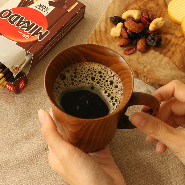 陶器やガラスに比べて割れにくく、軽いのも木製の特徴です。断熱性と保温性も備わっているため、温かい飲み物が冷めにくいこともおすすめポイント。