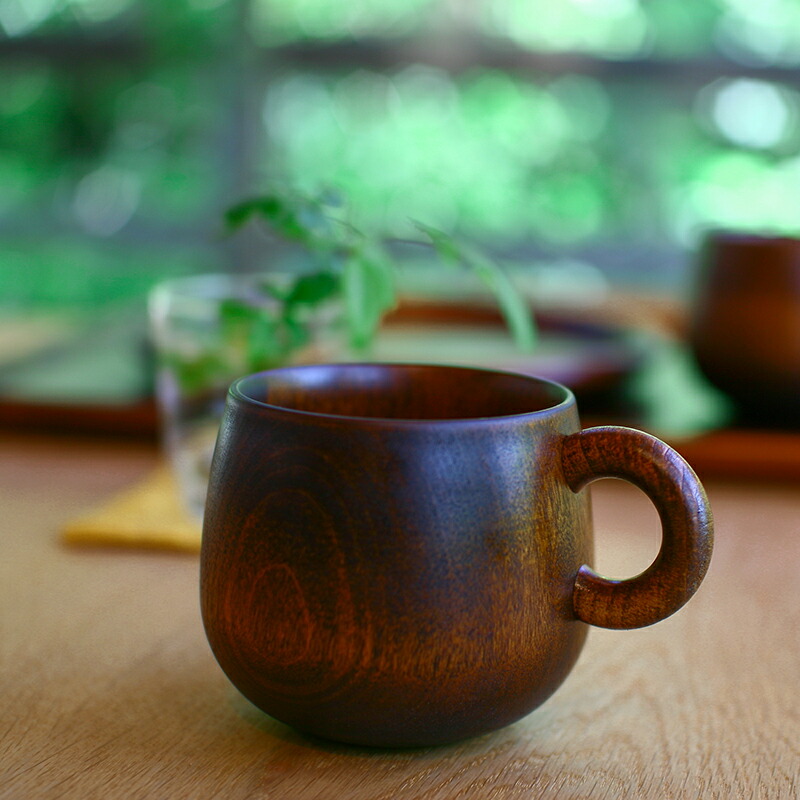 シックで落ち着いた色味は和食器はもちろん、洋食器との相性も抜群。美しく透き通った日本茶を注いだり、まろやかなポタージュを注いだり。暮らしに合わせて木製マグカップを楽しんでみてくださいね。