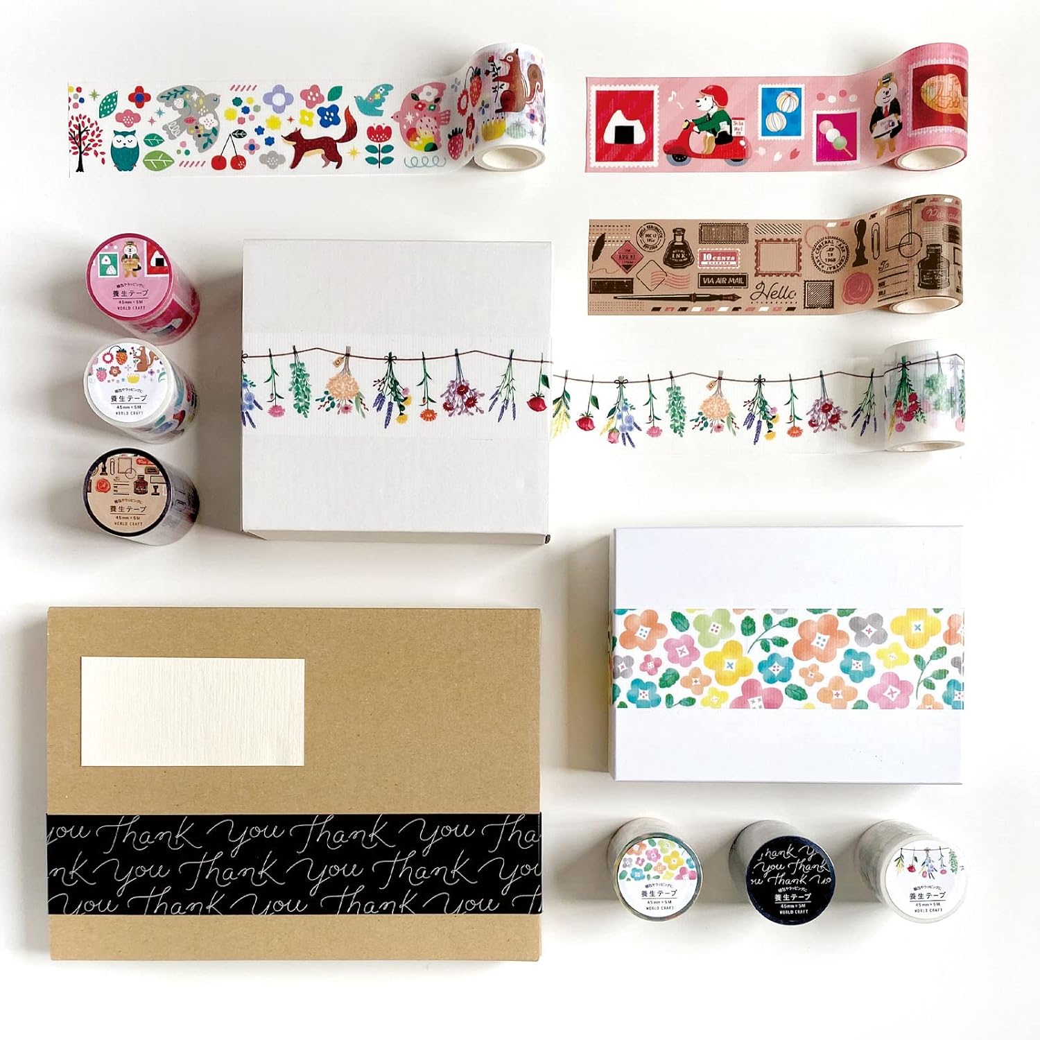 ドライフラワーや森の生き物、手紙のスタンプ柄などといったデザインのバリエーションが豊富なのもうれしいポイント。カラフルながらもやわらかい色合いで、荷物を開ける相手へワクワク感を届けてくれるでしょう。