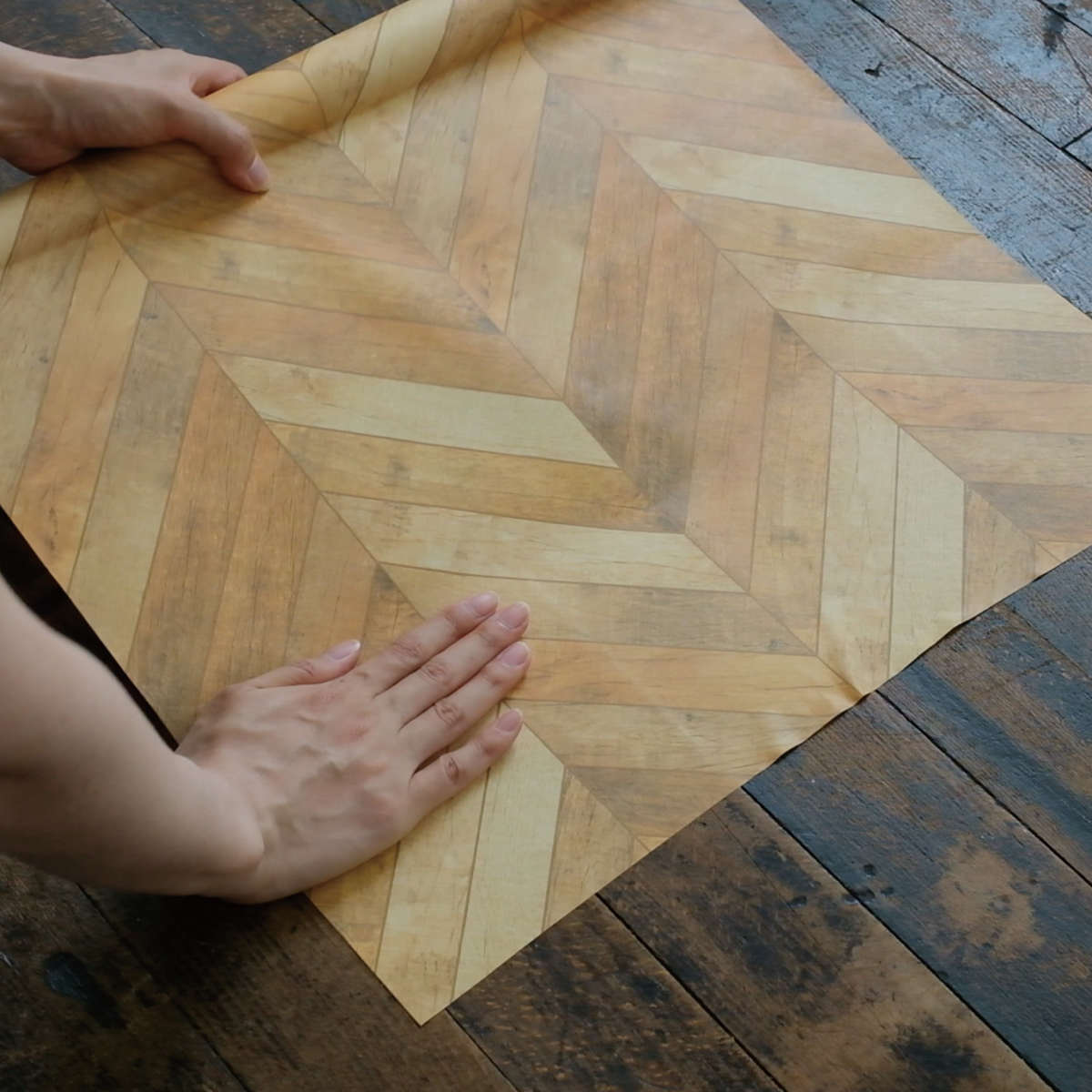 続いてご紹介するのは「mt」の「CASA fleece(カサ フリース)フレンチヘリンボーン」。床のリメイクに使えるマスキングテープです。フレンチヘリンボーン柄は、貼るだけでお部屋をナチュラルで奥行きのある印象に変えてくれます。