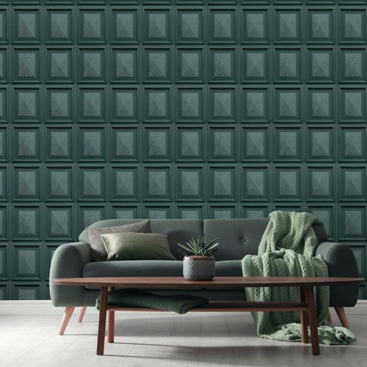 こちらは「World of Wallpaper(ワールド・オブ・ウォールペーパー)」の「木目調マーブル」。立体感のある木製の枠に、大理石のようなマーブル模様が印刷された、重厚感のあるインテリア性の高い壁紙です。