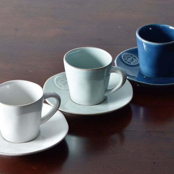 こちらは「COSTA NOVA(コスタ・ノバ)」の「コーヒーカップ&ソーサー」。コスタ・ノバは、ポルトガル発の食器ブランドです。コンパクトなマグカップなのでエスプレッソを淹れるときにもおすすめですよ。