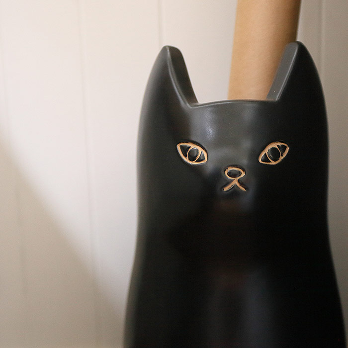 いつでも愛らしい猫に癒されたいなら「小物系」のインテリアから選ぶのもよいでしょう。特に、一輪挿しやペーパーウェイトなどはデスクの上に置いて、作業中などにふと眺めれば、疲れた心を癒してくれるはず。季節やその日の気分によって飾り方を変える楽しみもありますよ。