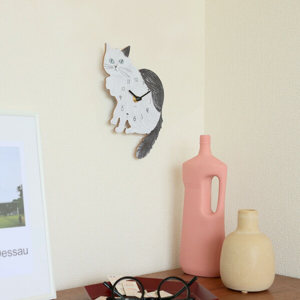 大きめのインテリアを置くスペースがない場合には、壁面インテリアに猫モチーフを取り入れると良いでしょう。例えば時計は文字盤全体が猫デザインになっているものも多く、頻繁にチェックするものでもあるため、実用性と癒しを両立できますよ。