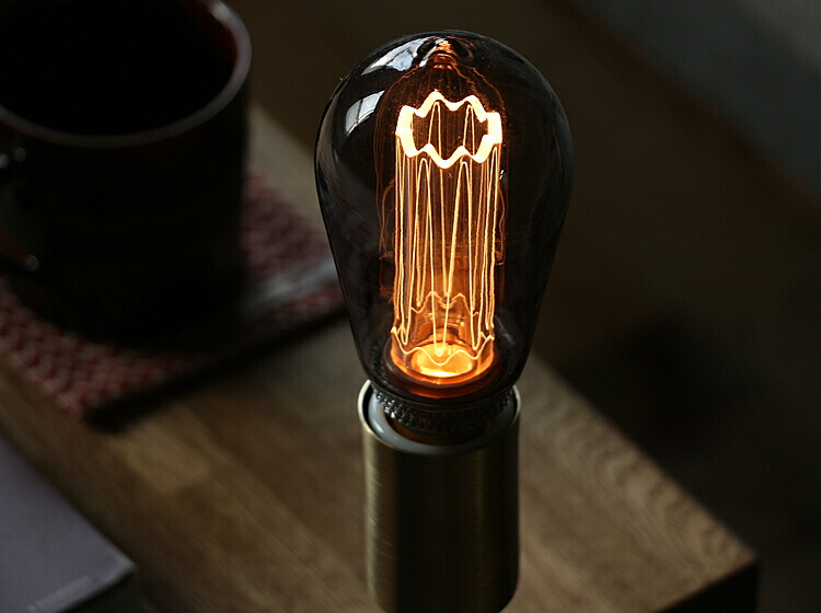 電球の形をそのまま楽しめるこちらのデスクライトには、「NOSTALGIA Edison Bulb(GRAY)」というロングタイプの電球がついています。こちらは、まるでカーボン電球のフィラメントのような繊細な光を灯す、LEDのグレーカラー電球です。