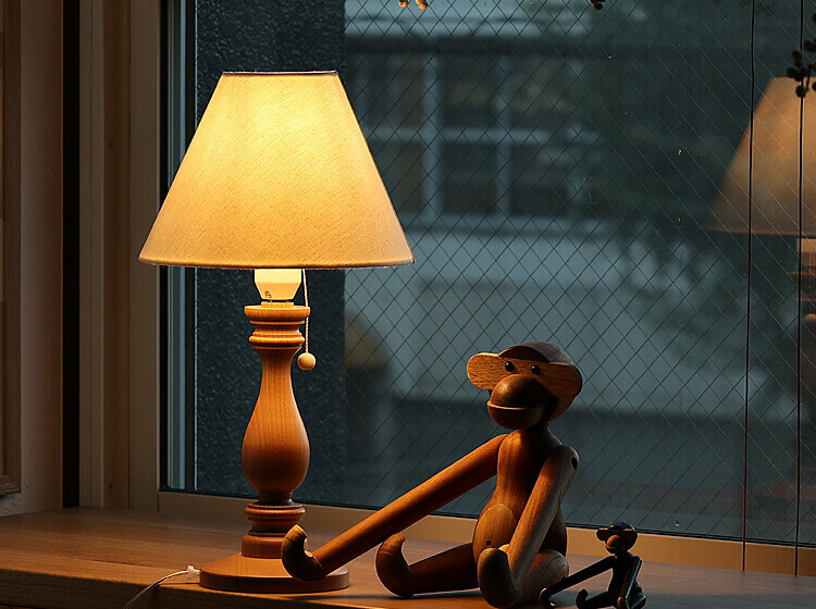美しいシルエットのウッドベースと温もりが溢れるファブリックシェード