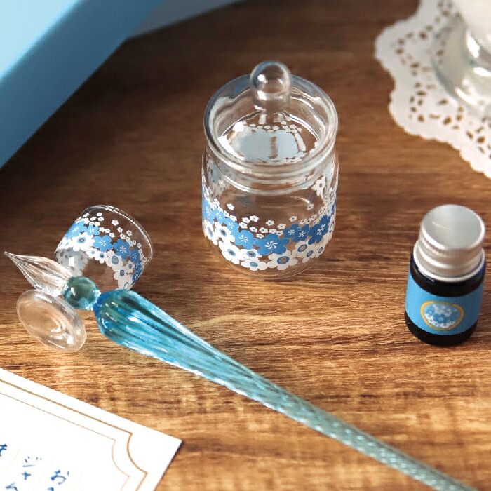 こちらはレトロなデザインが好みの方におすすめな、「アデリアレトロ」とコラボしたガラスペンセットです。ガラスペンが初めてという方でも大丈夫。人気アイテム「ボンボン入れ」をミニチュアにしたペン洗いや糸巻き型ペン置き、インクがセットになっており、すぐにスタートできます。