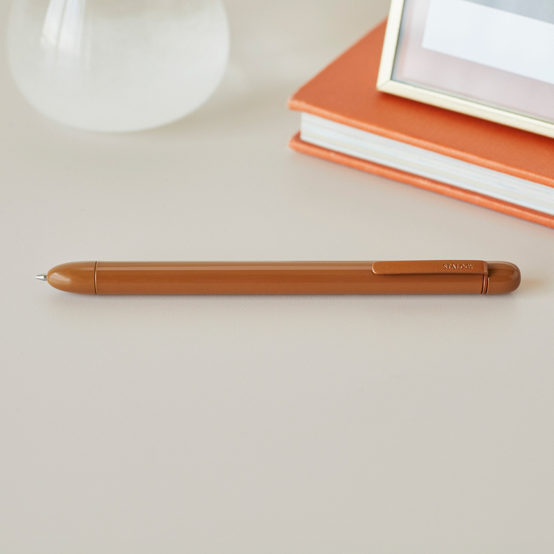 こちらは「ニトムズ」の「STALOGY」。ペン先を見せすぎない高級感のあるデザインに加え、天冠をひねってペン先を出すツイスト式を採用しているため、フォーマルシーンやビジネスにも使いやすいボールペンです。