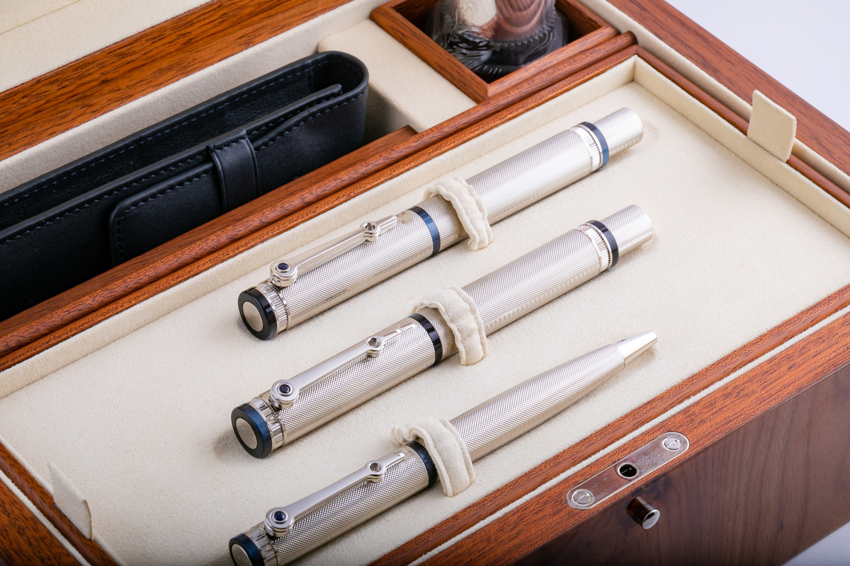 ペン先は書きやすい細字タイプでツイスト式を採用。書類に書き込むときはもちろん、ペンを取り出す瞬間すらも上品に演出するでしょう。