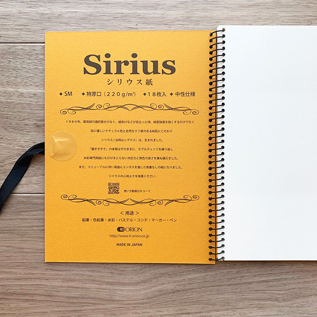 色の濃淡を楽しめるラフな紙質が魅力。「オリオン」のシリウス水彩紙
