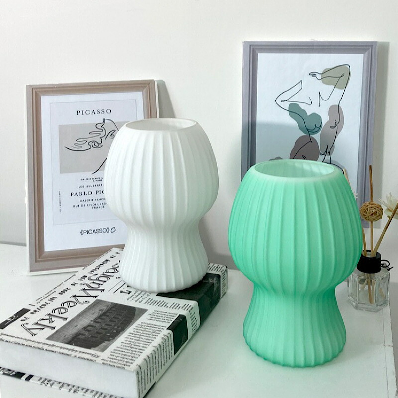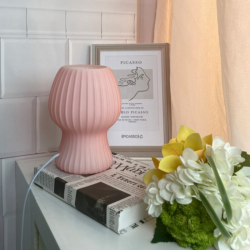 韓国風の白い部屋に映えるカラフルな色合い。こちらは、グリーンやピンクなどのミルキーカラーがかわいらしい花瓶のようなデスクライトです。